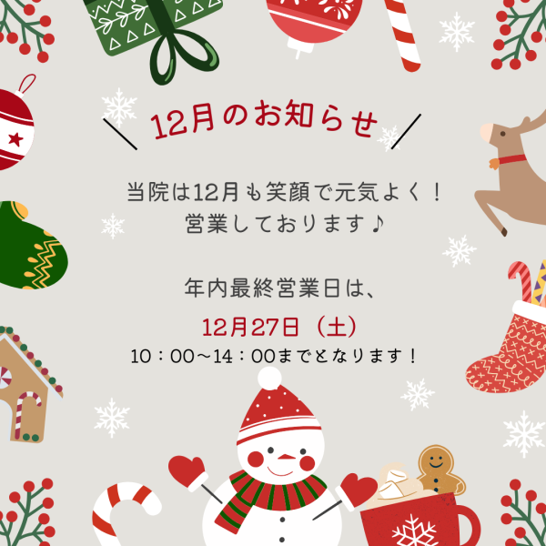 12月のカレンダーと、お知らせです。
