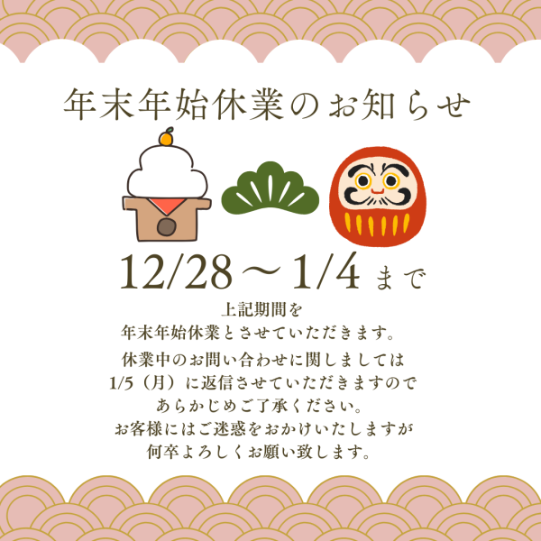 お休み期間中のお問い合わせに関しましては、1月5日(月)に